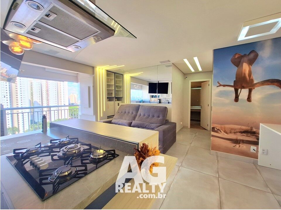 Apartamento totalmente reformado, mobiliado e super aconchegante, andar alto com vista livre e sol da manhã, repleto de armários planejados, marcenaria, eletros, mobília e piso em porcelanato de primeira linha. O segundo quarto foi transformado em um closet super bem aproveitado e pode ser revertido facilmente em 2 dormitórios. O imóvel possui infra para a instalação de ar condicionado. O condomínio tem 5 anos e possui lazer completo, academia excelente, piscinas climatizadas, quadra coberta, churrasqueiras e muito mais! Entre em contato e agende sua visita.
